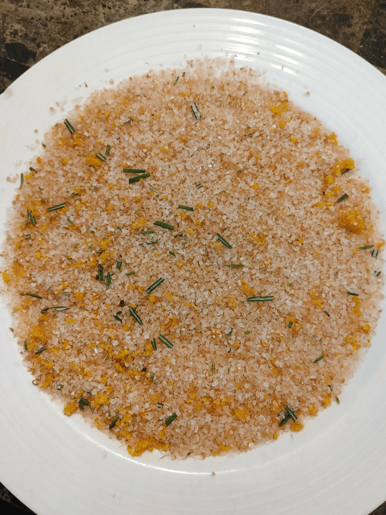 • 1 tasse de gros sel (sel de mer ou sel kasher) – j’ai utilisé un sel rose.