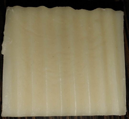 Comme une image vaut mille mot, voici l’un des savons ainsi produit. Blanc, sans dépôt ni odeur.